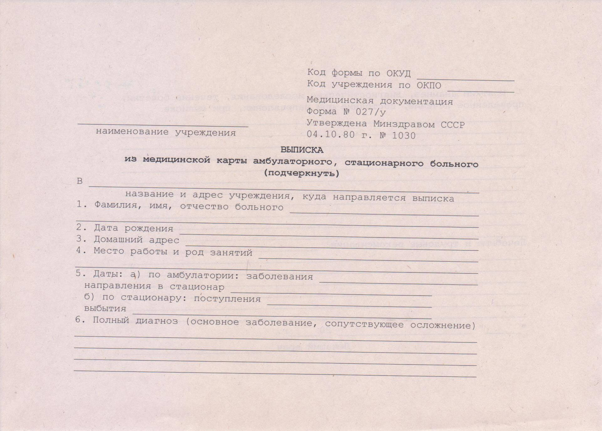 Что нужно для получения справки 027/у?